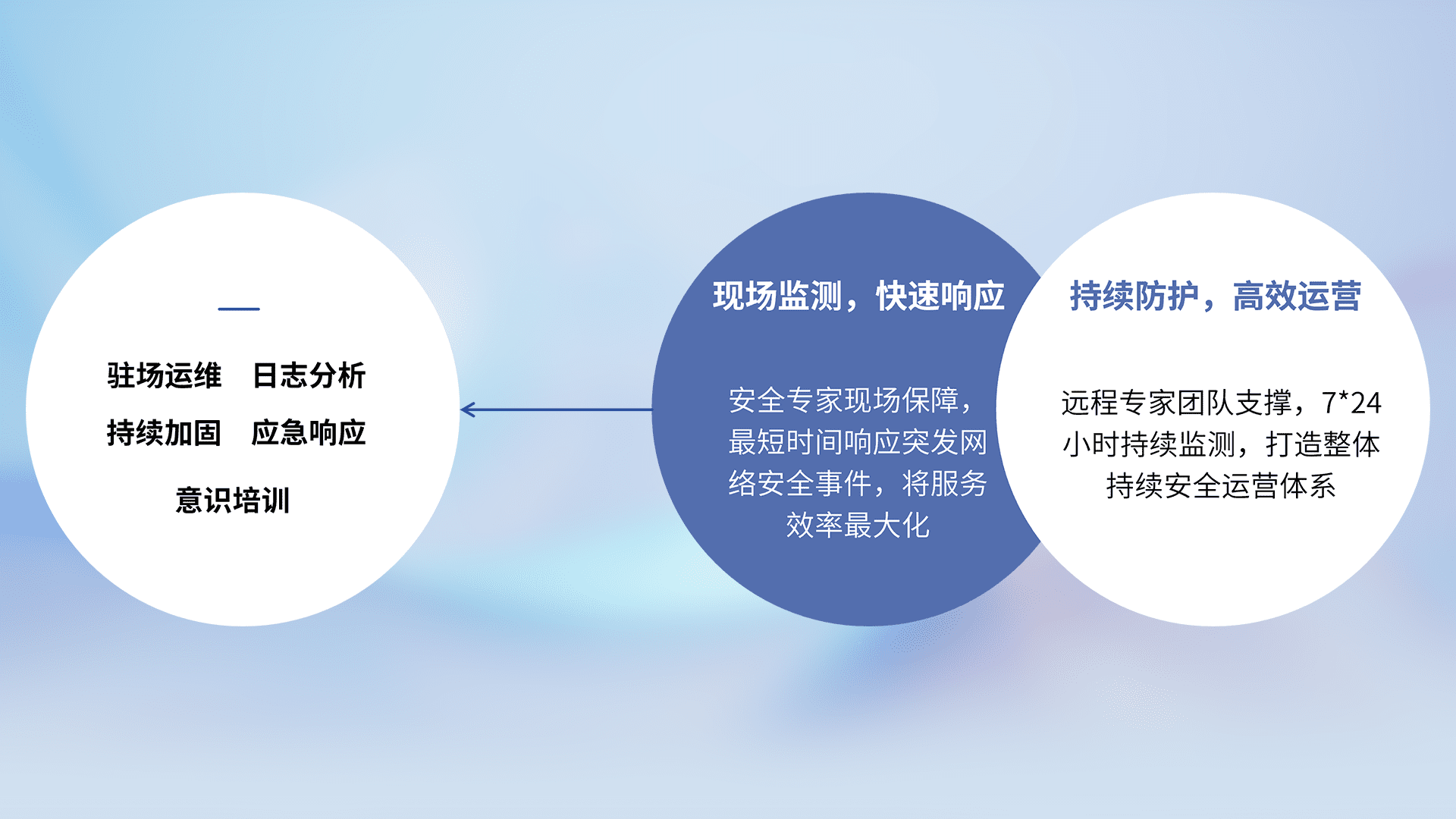 7X24小时持续监测安全事件,保持安全策略有效性,降低资产脆弱性风险,,,精准拦截黑客攻击,,,,减少被黑客利用的机会,,,,第一时间遏制,,,降低损失。。